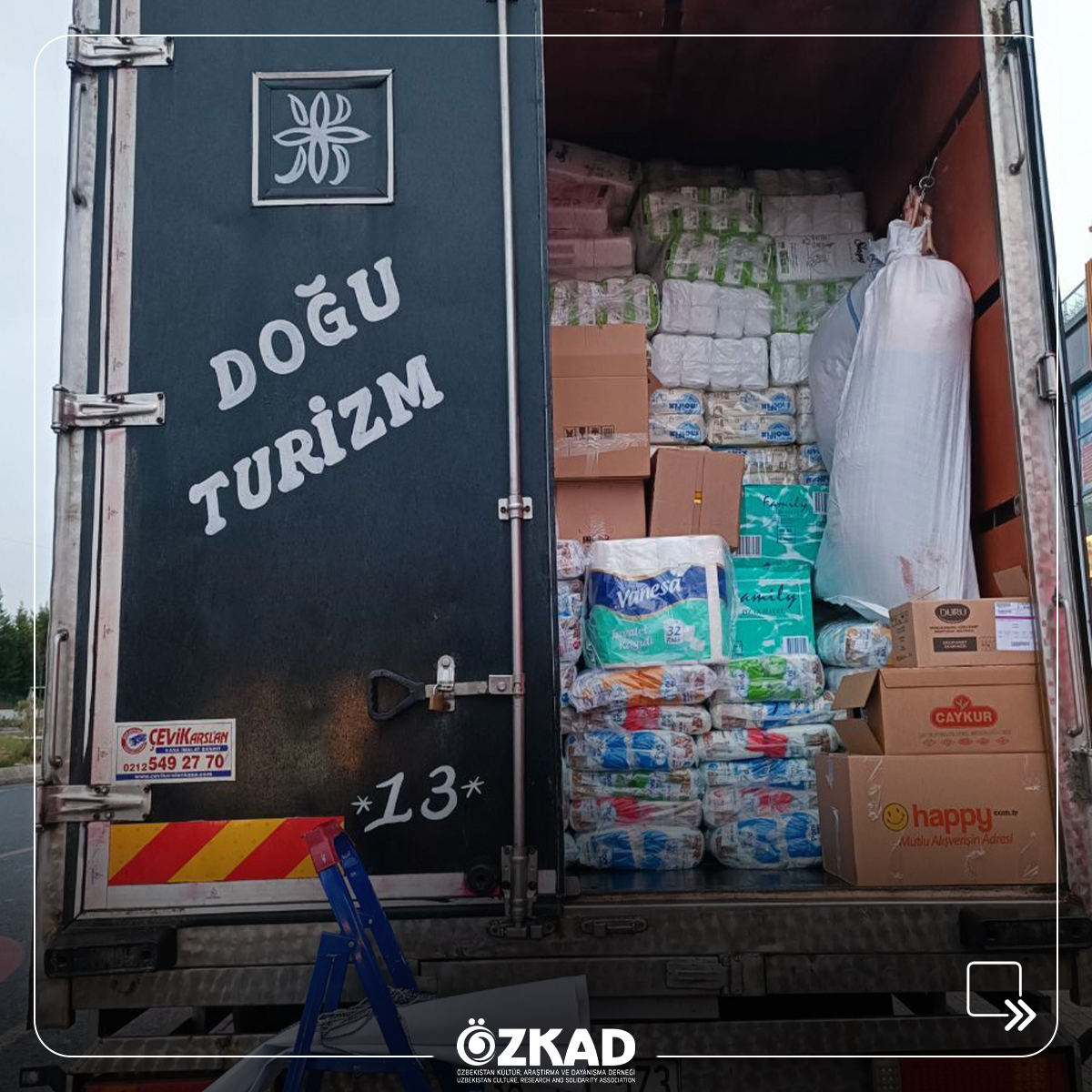 Deprem bölgesine gönderilmek üzere insani yardım malzemeleri ile yüklenen yeni bir kamyon İstanbul’dan yola çıktı.